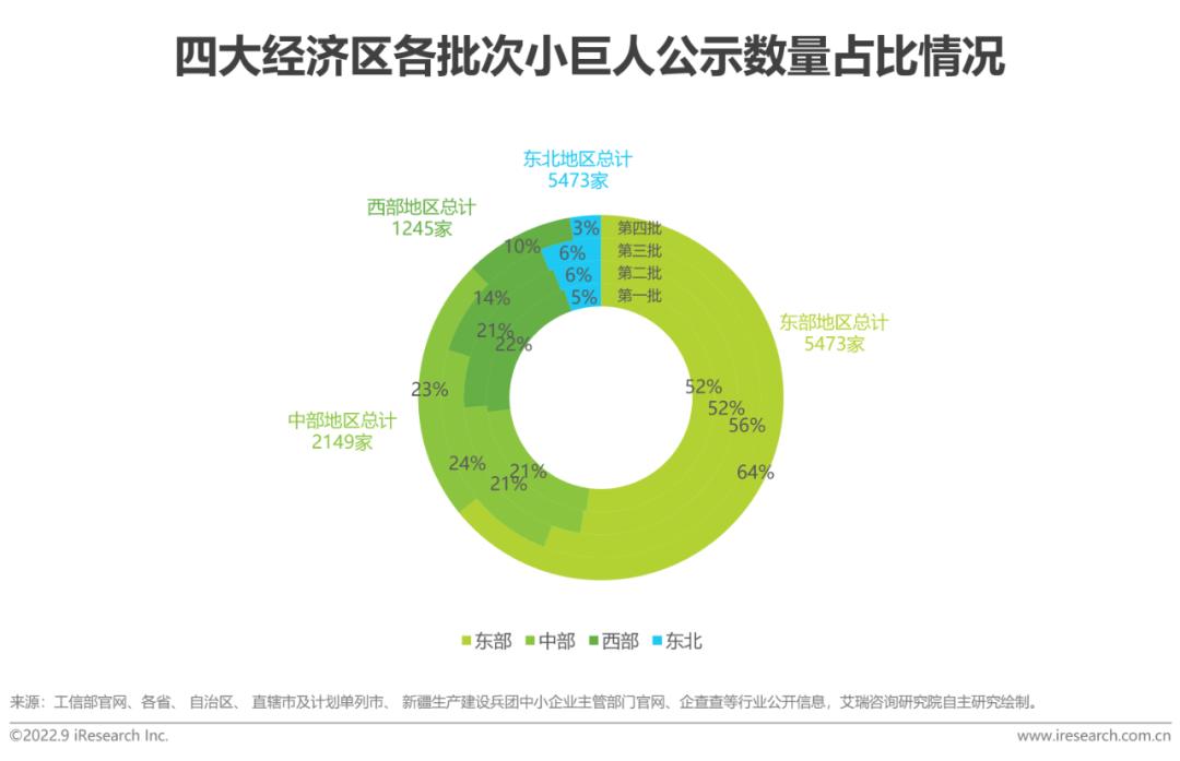 东部地区始终为小巨人培育引领核,中部地区保持良好态势