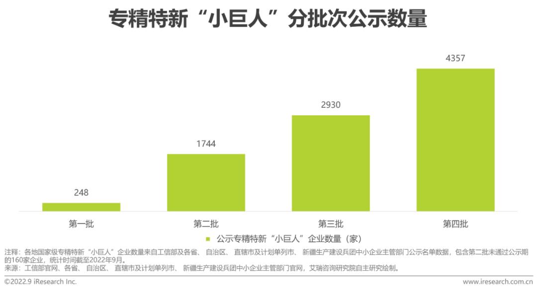 自2019年以来,工信部共分四批次公示了9279家专精特新“小巨人”企业,已近达成2025年培育1万家专精特新“小巨人”企业的目标。