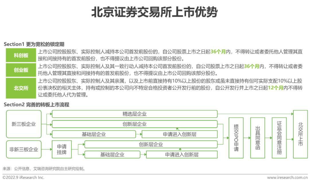如何拓展“专精特新”企业融资渠道以满足“专精特新”企业高质量发展的资金需求,始终是地方政府关注的重点。截至2022年7月,我国共398家专精特新“小巨人”企业在A股上市,占比尚不足专精特新“小巨人”企业总量的10%。北交所于2021年9月3日注册成立,由于成立时间较晚,专精特新“小巨人”企业在北交所上市上市数量较少。但相较于沪深两市,“专精特新”企业在北交所上市具有企业锁定期较短、转版上市制度完备等优势,为各地方政府引导“专精特新”企业上市提供了新的机遇。山东、江苏等地区均通过共建“在地化”服务平台等方式积极与北交所建立合作关系。