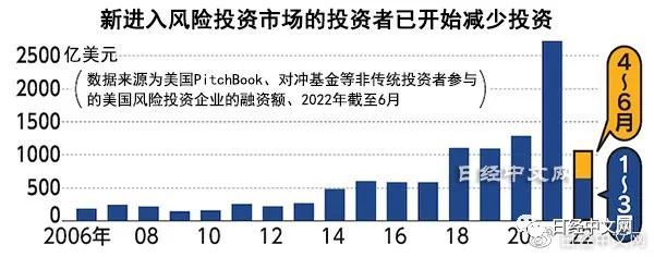 背后存在软银集团和美国对冲基金老虎环球基金(Tiger Global Management)等“非传统投资者”的行动。以低利率为背景,这些基金自2017年前后起加强了曾由风险投资(VC)垄断的初创企业投资,尤其是向投资回收已临近的企业投入大量资金,推高了企业估值。但在目前,以利率上升等为背景,这种情况出现了“逆转”。美国CB Insights的统计显示,融资5轮以上的初创企业估值的中间值在2022年1~6月为20亿美元,低于2021年的21亿美元。新的“独角兽”企业也在减少,证实了非传统投资者的态度变化。