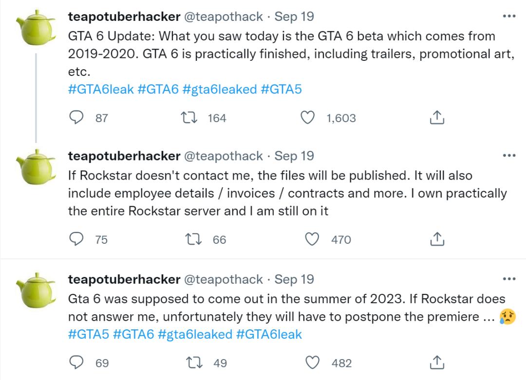 而这位名为“teapotuberhacker”的黑客在GTA论坛上放出90个疑似为GTA6平台的录屏后,称已经通过攻击游戏开发商员工的职场通讯软件Slack获得测试视频以及GTA5和GTA6的源代码,未来还会发布更多与项目有关的消息。