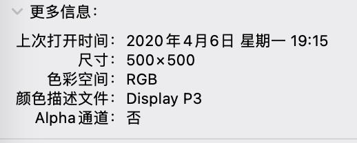 如果是 Photoshop 这样的作图软件,在新建一个文件时我们可以选择新建广色域的文件。修完图保存时,选项中同样也会提示我们是否嵌入颜色配置文件——这就是在文件里嵌入了标记,学名叫 ICC 配置文件。我们在 Mac 上查看文件信息时,就能在颜色描述文件这一项看到 sRGB 或者 Display P3。系统读取到这个标记,就知道要怎么还原色彩才是正确的。