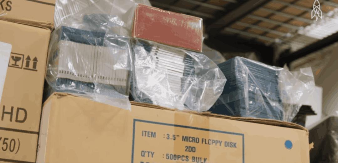 而汤姆可以利用自己的机器,给这些使用过的软盘清除数据。再重新贴上标签,让它恢复成二十年前的年轻样貌。