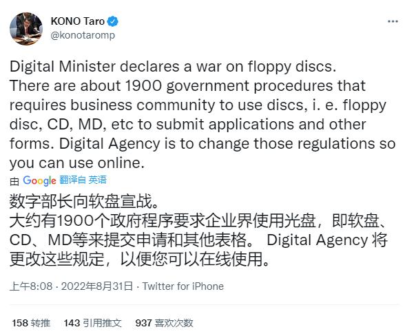 根据数字部长的说法,目前日本还有 1900 个政府流程正在使用包括软盘在内的各种 “ 盘 ”,来提交表格和申请。