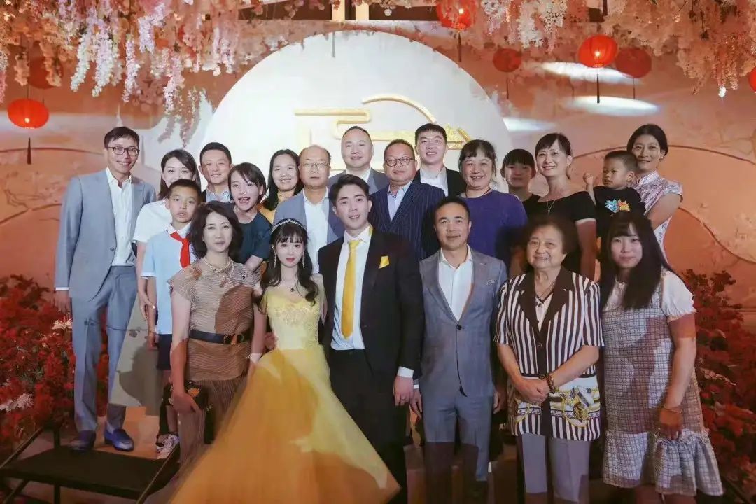 在订婚礼上,特步创始人丁水波连连喊话新人,要在事业上相互扶持。
