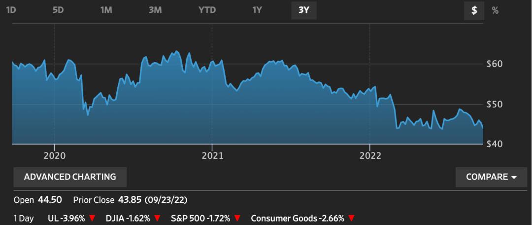 联合利华股价三年走势图
