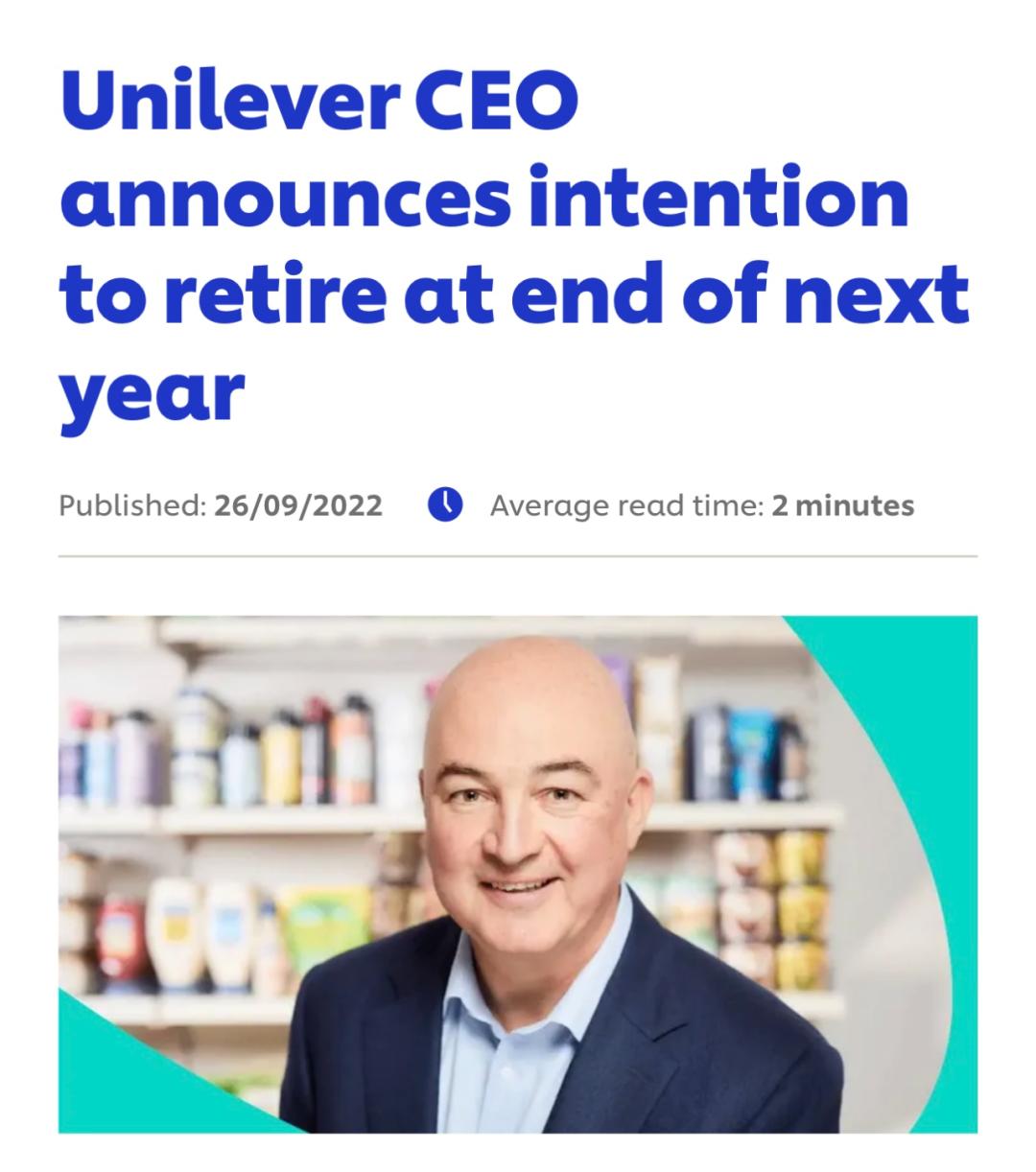 今天,在上述通报中,已加入联合利华35年的乔安路称,随着其首席执行官任期将进入第五年,相信目前是董事会开始正式寻找继任者的合适时机。