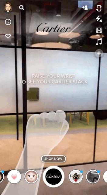 卡地亚在 Snapchat 中推出 AR 试戴推广其首饰产品。图源:Snap