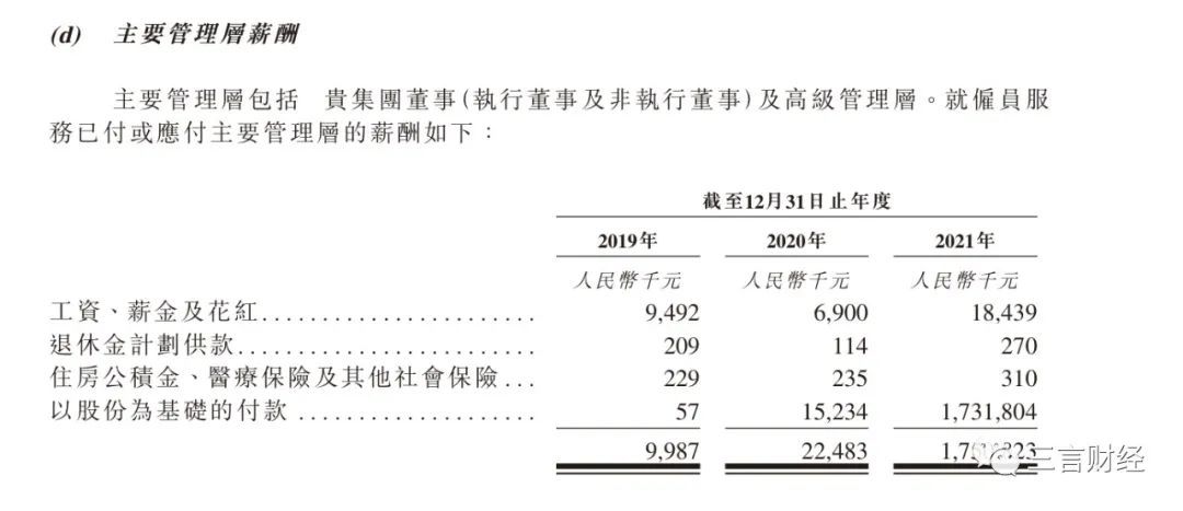 不过,2019年和2020年两年,沈晖薪酬中并不包含限制股份或购股权开支,仅含薪金及花红。分别为145.6万元和161.8万元。