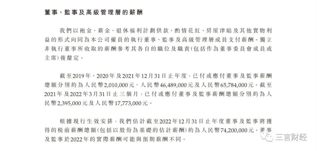 2019年至2021年,公司已付或应付董事及监事薪酬总额分别为201万元、4648.9万元和6578.4万元。
