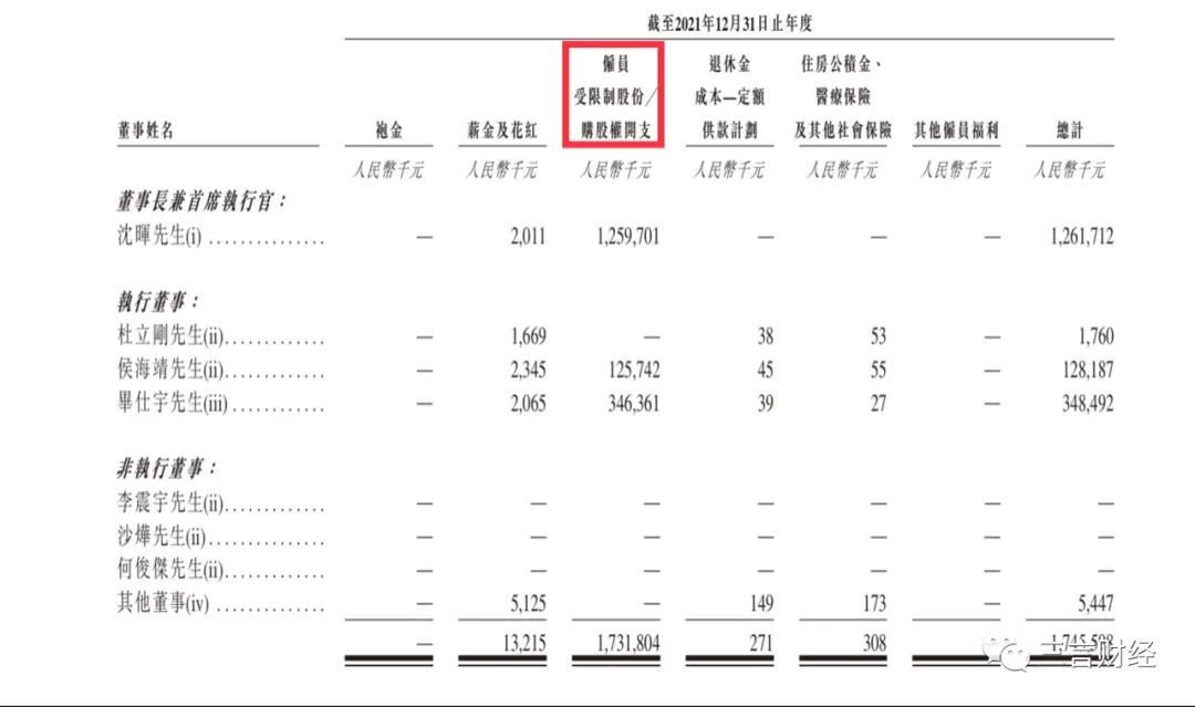 招股书上明确表示,这12亿元收入绝大部分是“受限制股份/购股权开支”,并不是沈晖实际收入。