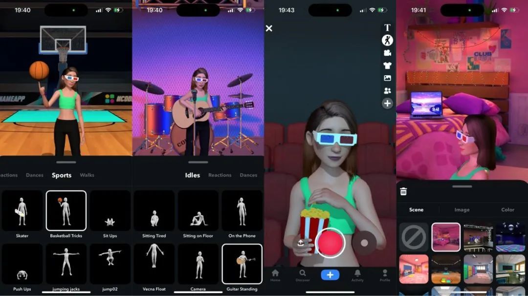 而从另一个视角来看,Codename 的动作、场景和服装有完整的适配逻辑。在电影院吃爆米花、在篮球场打球、在舞台弹吉他都可以轻松实现。因而 Codename 虽然是一款虚拟社交产品,但场景却来源于生活。