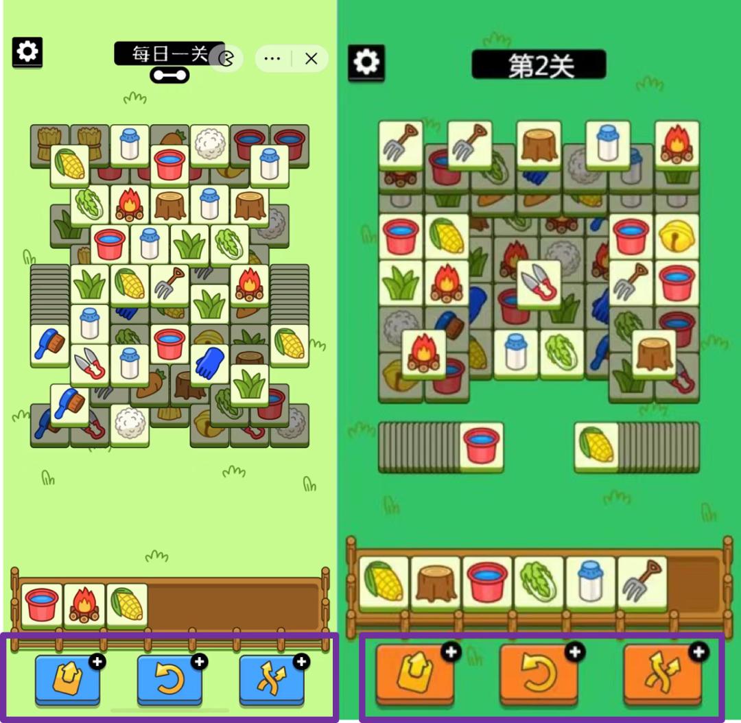 图注:左图为“羊了个羊”,右图为“羊了咩羊”小游戏界面。
