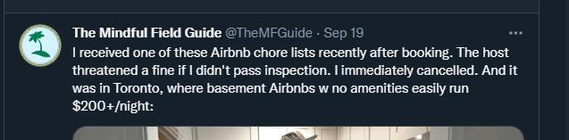 网友 @TheMFGuide 透露,自己前不久在 Airbnb 上订房,收到了一份家政工作列表。房东宣称如果没有满足检查标准的话会罚款……结果自己直接取消订单了。