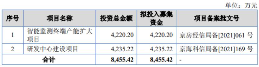 这次北交所IPO拟募集的8450万元也要用来搞研发,智能监测终端产能扩大项目和研发中心建设项目的投入各占半。