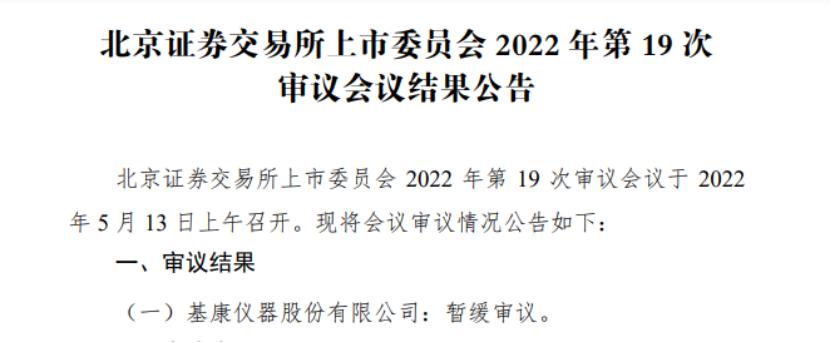 在今年5月13日北交所上市委召开的2022年第19次审议会议上,基康仪器第一次上会就被暂缓审议。