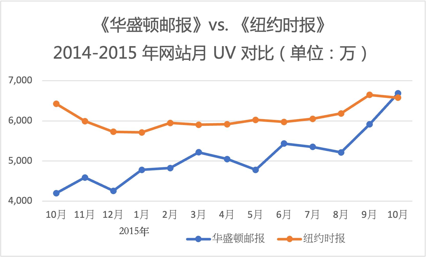 在贝索斯慷慨的财政支持下,曾一度濒临绝境的《华盛顿邮报》终于迎来了增长和盈利。在内容纬度和网页、数字端体验的全方位优化下,《华盛顿邮报》网页在短短两年内反超《纽约时报》,在2015年获得超过6000万的UV。