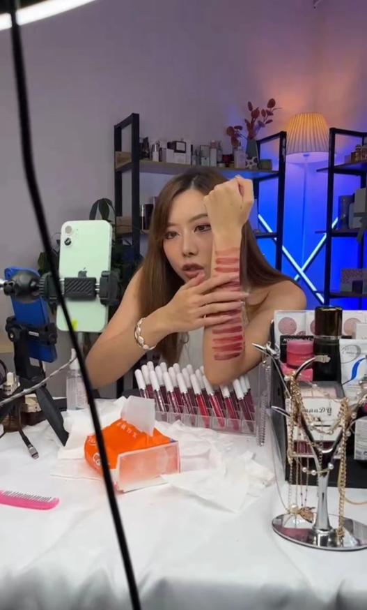 供图|受访者(小红书ID跨境主播卡卡) 卡卡在直播间向外国观众卖口红