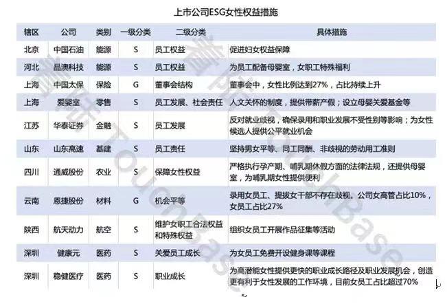 又如,着陆TouchBase曾在今年妇女节前夕统计了133家上市公司在女性权益保障层面的措施,发现仅有11家企业有落地措施,占整体比重的约8.27%。在这些措施中,也有很明显的ESG行为和PR行为的区分。