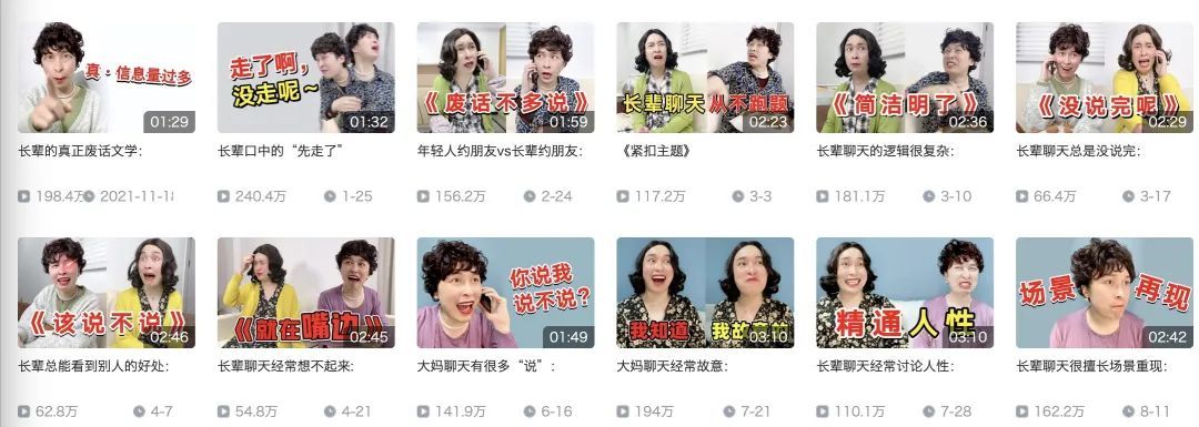 4、【大连老湿王博文】重现家庭里的七大姑八大姨们的交流场景,主要展现年轻一代和长辈们之间的沟通场景。