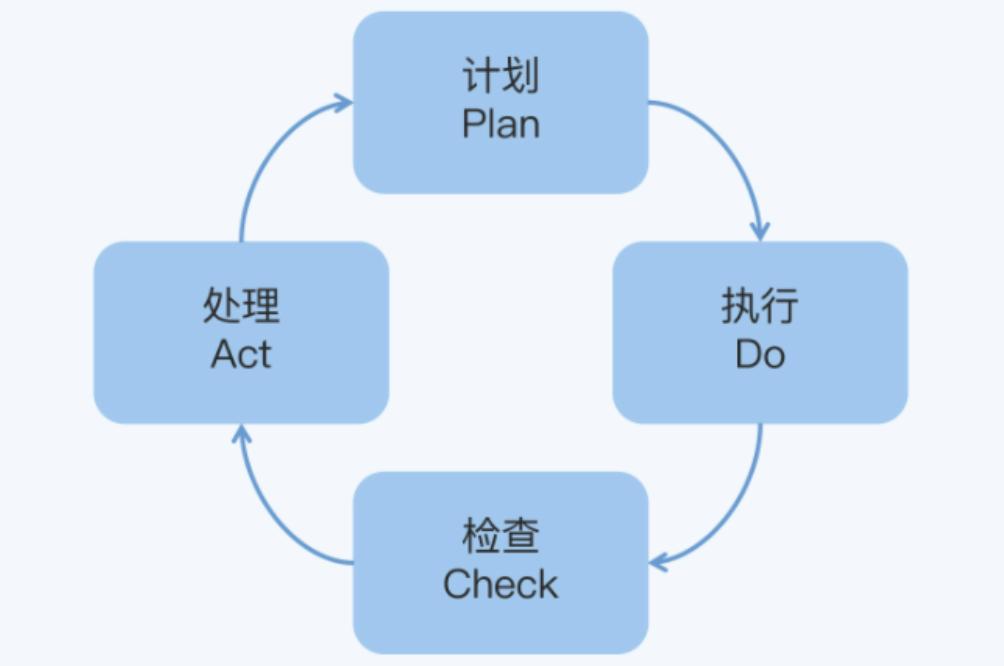 此模型为戴明竭尽心力推广的全面质量管理的思想基础和方法依据。PDCA模型不只能应用在质量管理,在个人层面的复盘也很高效。PDCA模型分为4个阶段:Plan(计划)、Do(执行)、Check(检查)、Act(处理)。