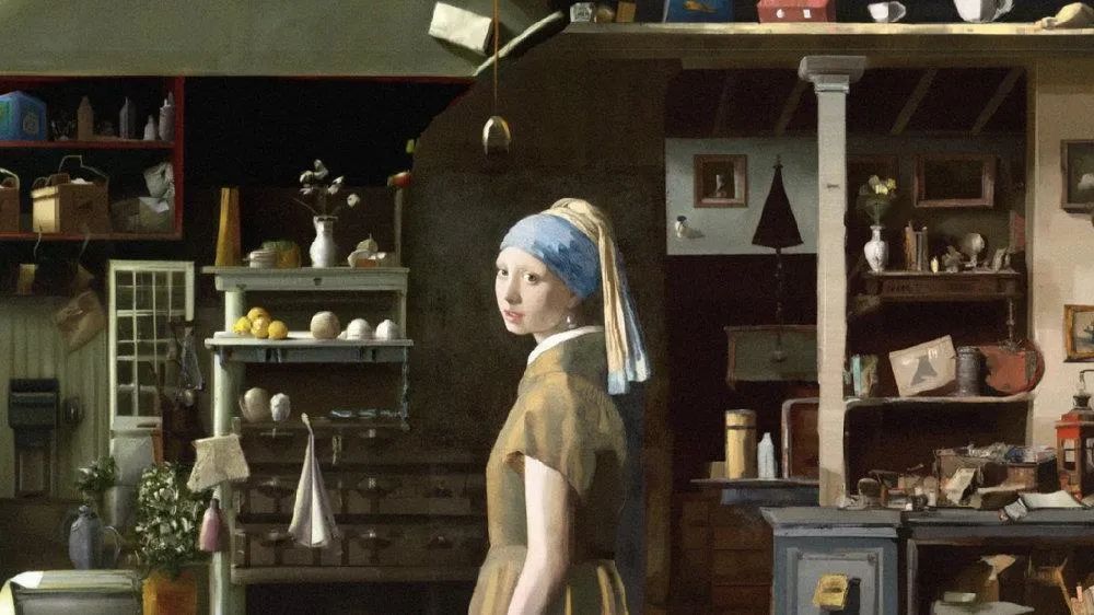 除了生成指定图像,现在的AI还能“想象”出画框之外的场景。此前AI绘图“DALL-E”添加了“outpointing”功能,为系统带来了拓展任何给定图片边界的功能。其中传阅最为广泛的作品莫过于《带珍珠耳环的少女》一图。