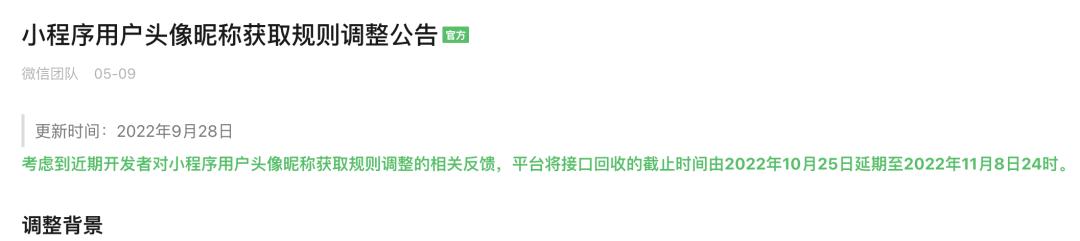 因为H5能够获取头像了,对于开发者来说小程序不能获取也没事,毕竟数据都拿到了。