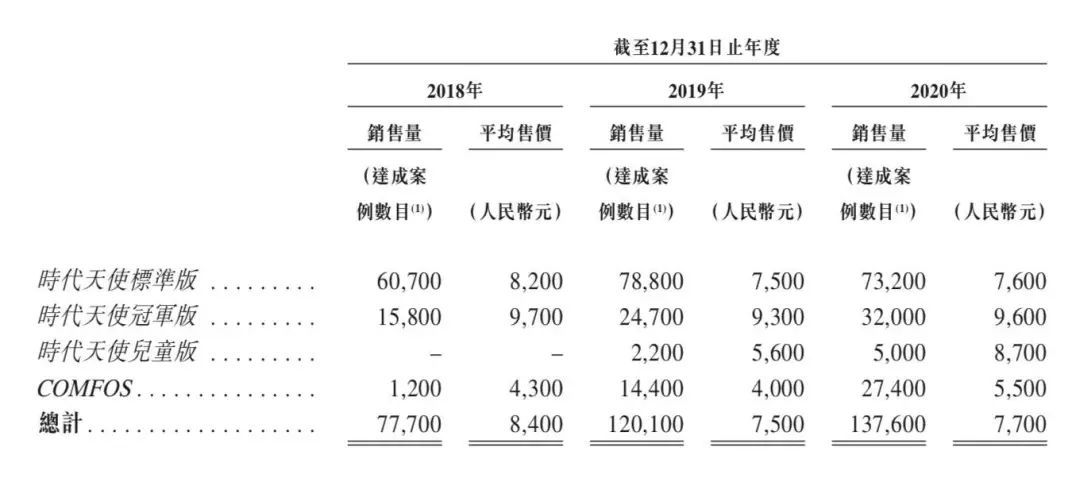 以行业头部国产品牌时代天使为例,四款产品的建议零售价格分别为3.2万、4万、2.6万和2.4万。但实际上,以2020年为例,其出厂价分别为7600元、9600元、8700元和5500元。