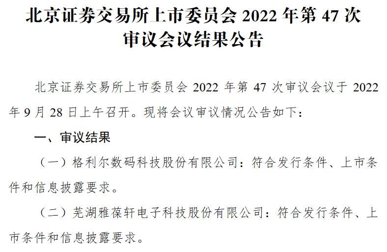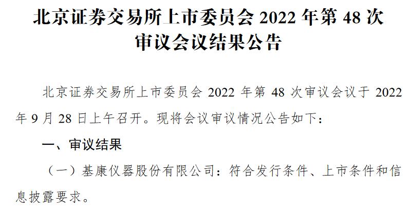北交所2022年第47、48审结果出炉:格利尔、雅葆轩、基康仪器过会