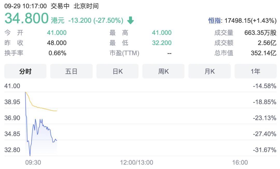 9月29日,零跑汽车在港股正式上市,港股发售价为每股48港元,开盘后其股价便开始暴跌。