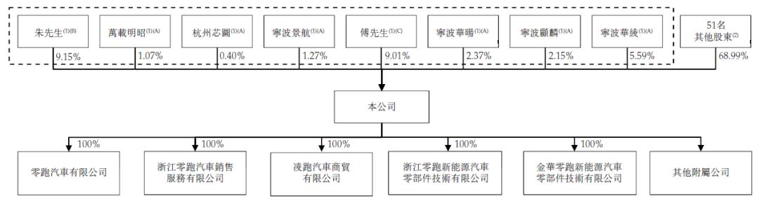 招股书显示,零跑汽车董事长兼CEO朱江明持股9.15%,傅利泉持股9.01%,大华股份持股8.89%,而大华股份的实控人也是傅利泉。
