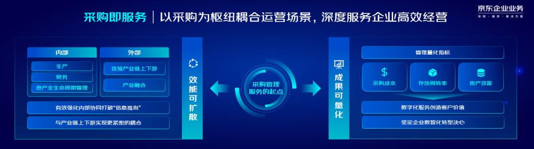 在2022京东企业业务合作伙伴大会上,京东集团副总裁、京东零售企业业务事业部总裁李靖提出了“采购即服务”的价值主张。京东企业业务以采购及履约作为核心服务,不断向更深入的采购需求制定、资金预算、招标、对账、结算、开票等各个环节延伸,并最终打造全链路的服务,提升企业采购效率。
