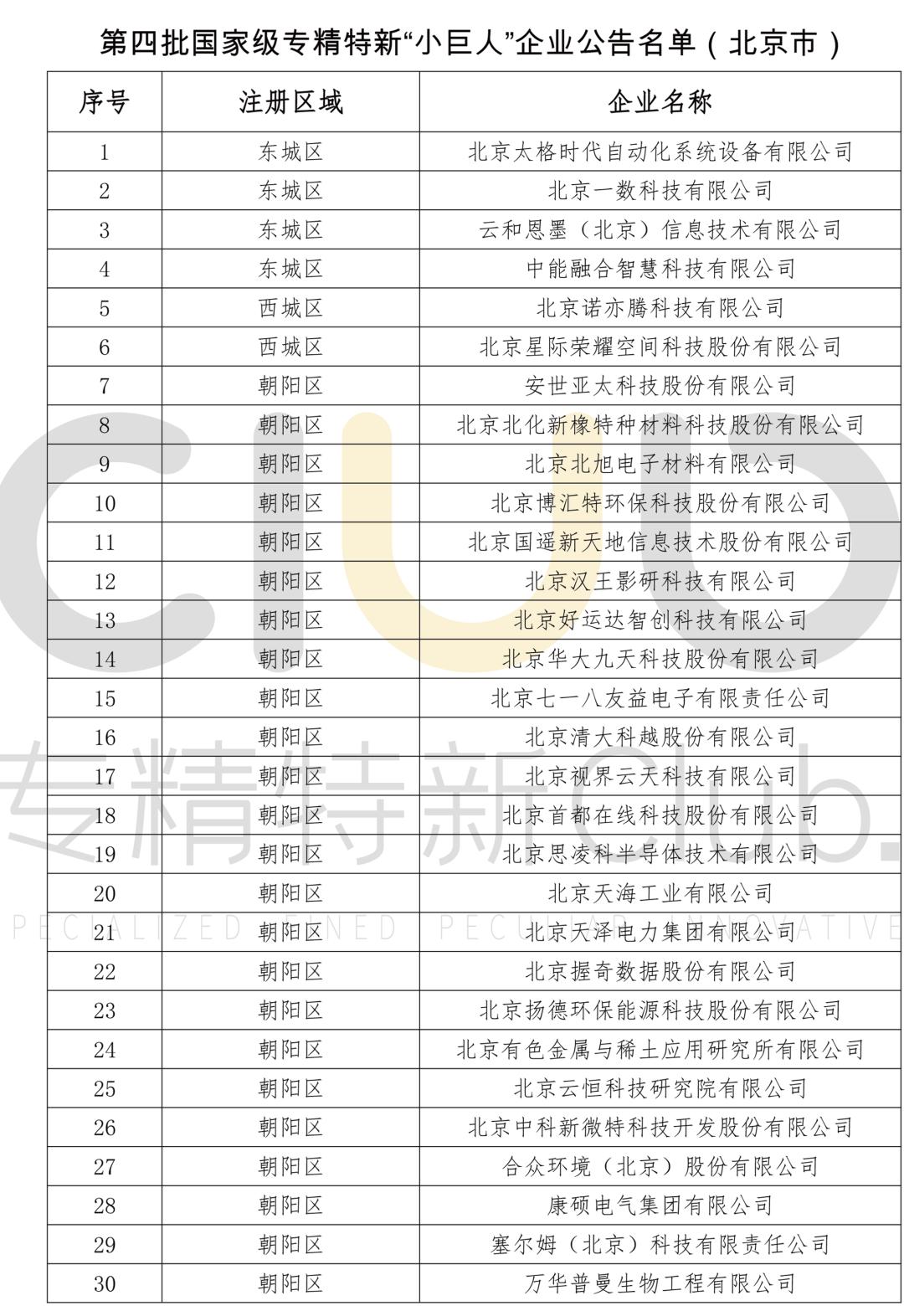 名单公布!北京333家企业入选第四批国家级专精特新“小巨人”(附名单)