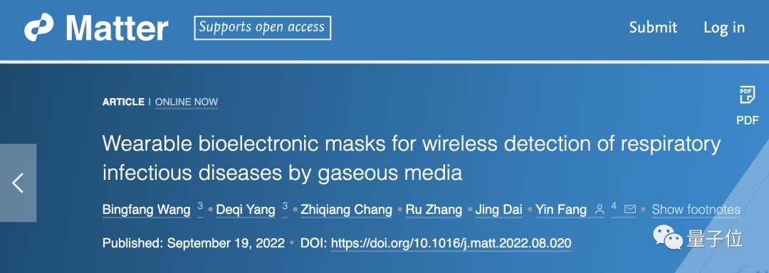 打造了一款可穿戴无线生物电子口罩系统。
