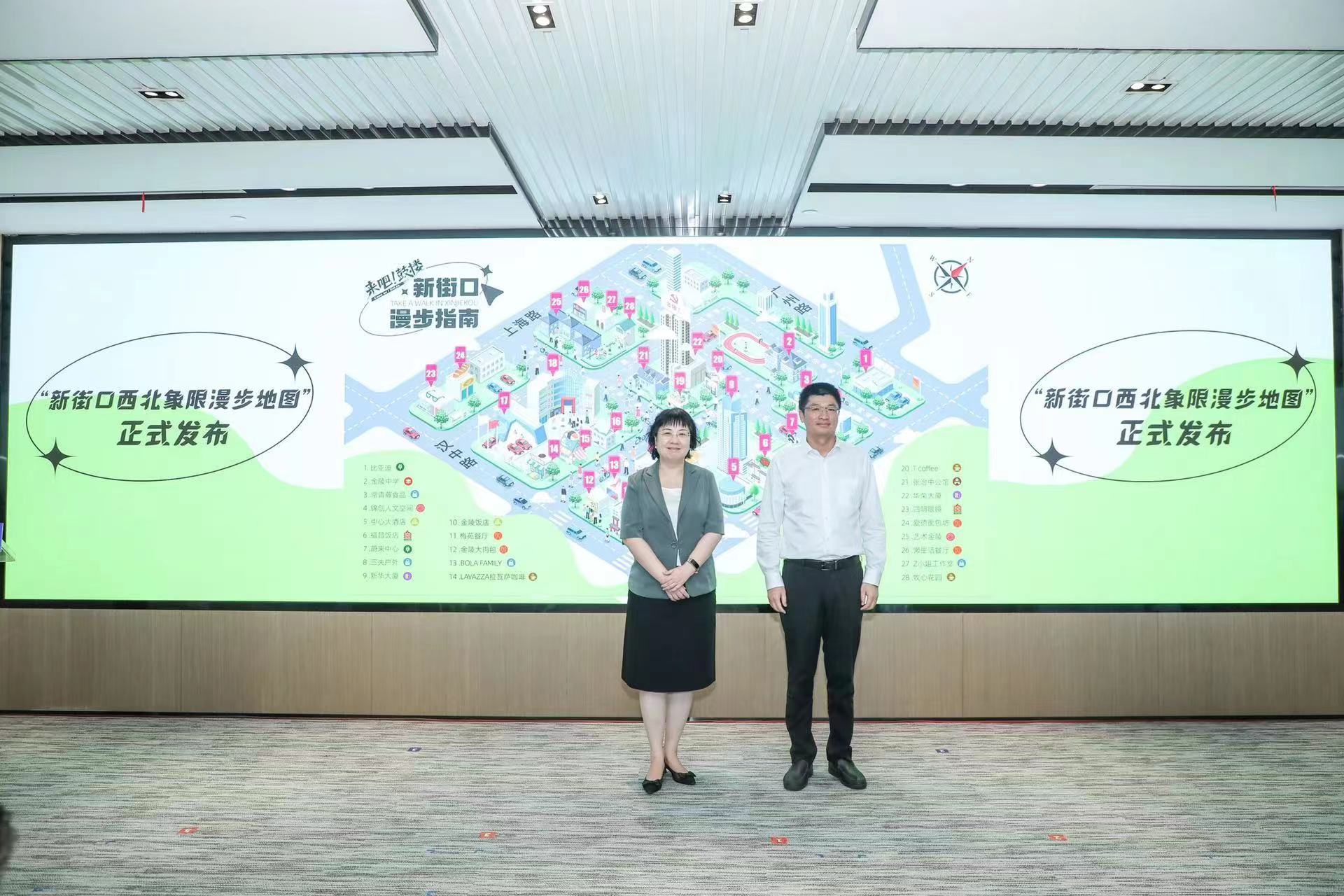 南京市商务局副局长富宁宏,鼓楼区区委常委、副区长郁健共同发布“新街口西北象限漫步地图”,地图汇集了一批特色、精致的老字号、新小店,是年轻人漫步国际化新人文街区的指南。