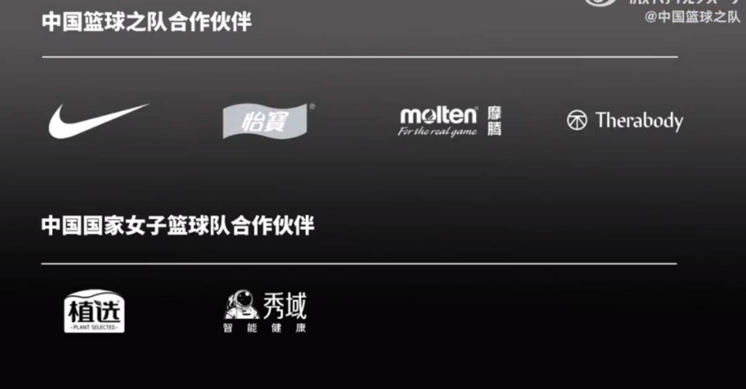 中国篮球队和女篮队目前的合作伙伴图源微博账号@中国篮球之队