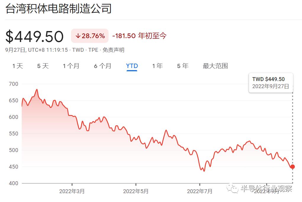 全球最大的芯片代工制造商台积电的股价今年以来下跌超过28%。
