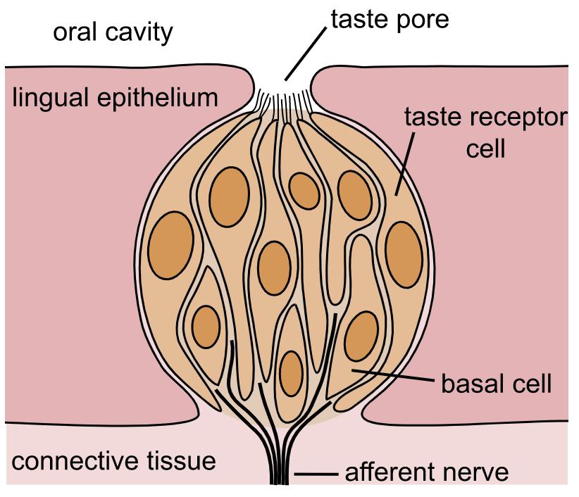 根据科学研究表明,我们透过味蕾得知味道,位于味蕾之下的味觉细胞与口腔内各种不同的味觉分子结合,而产生动作电位(Action potential),激发其下的味觉神经纤维产生讯号传递到大脑,而产生各种“味道”的感觉。