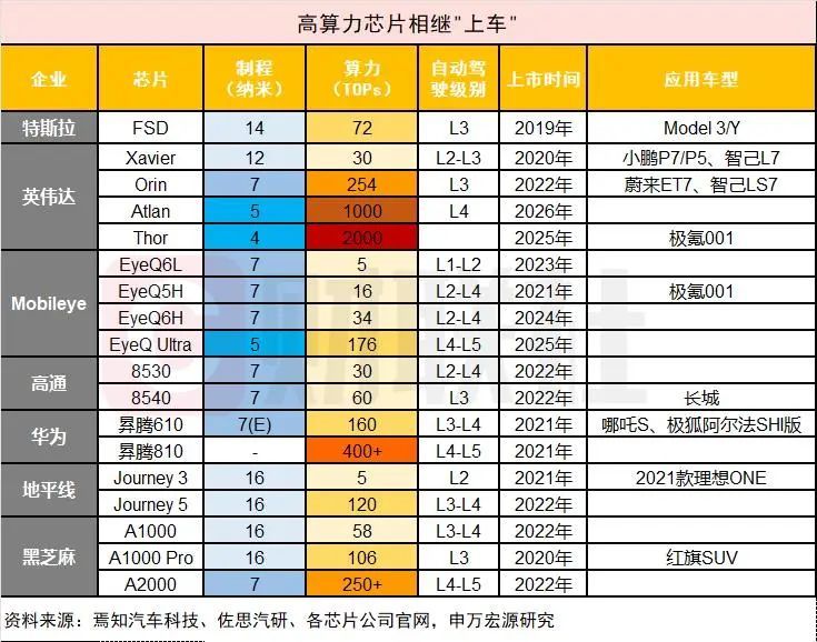 自动驾驶芯片顶流争霸,国产新秀纷纷崭露头角