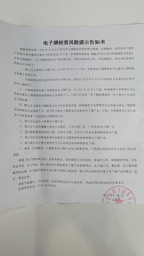一位江苏的电子烟店主提到,整个江苏只有约5000张许可证,是全国各省份里数量最多的。他听到的通知是,不会增加数量,有店主退出才会让新店主补上。且如果门店房租到期,或更换地址,都需要重新申请许可证。