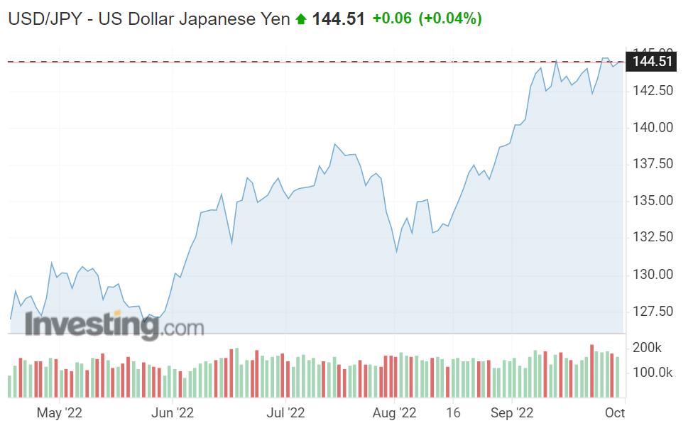 虽然短期内日元得到了提振,但在美联储加息、美元一路走强的格局下,日元面临的外部环境依然严峻。从汇市上来看,依然坚持宽松的日元在本周二(27日)再次贬回144区间,仍未摆脱贬值压力。