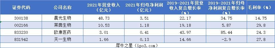 和同行业上市公司相比,公司近三年毛利率维持在24%,2021年毛利率为24.3%。同行业上市公司——晨光生物、莱茵生物、天一生物的毛利率分别是14.75%、29.8%、27.8%。