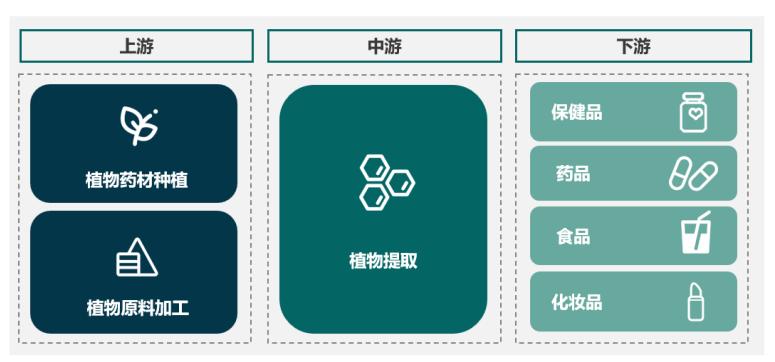 从产业链获悉,下游主要应用于保健品、药品、食品、以及化妆品。其中保健品行业是现阶段植物提取物的重要应用。