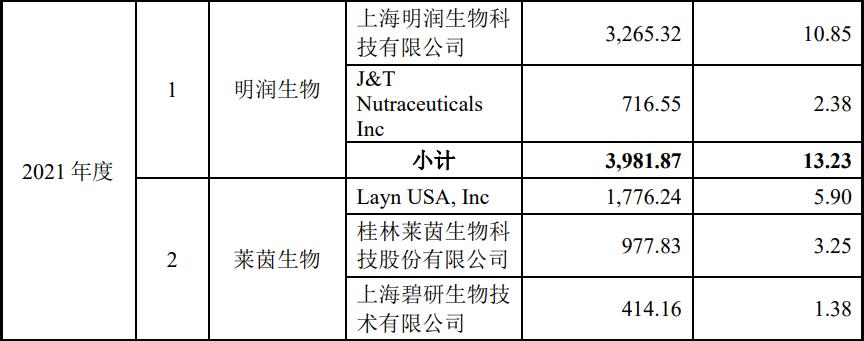 在公司的不懈努力下,目前公司已经和行业内多家知名企业达成合作。2021年公司前五大客户分别是明润生物、莱茵生物、祥源生物、TR、中化健康。