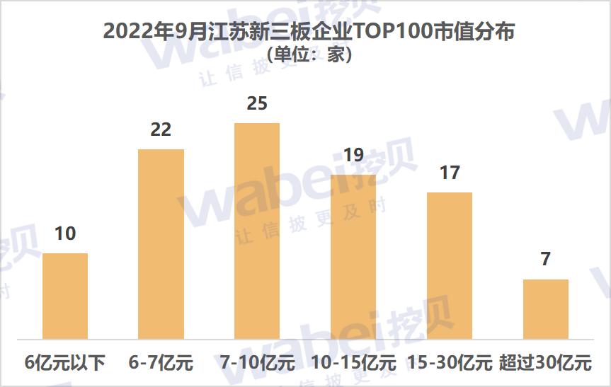 挖贝研究院梳理出2022年9月江苏新三板企业市值TOP100(以下简称:“榜单”或“TOP100”),7家企业市值超过30亿元,17家为国家级专精特新“小巨人”企业,近4成企业冲击北交所。