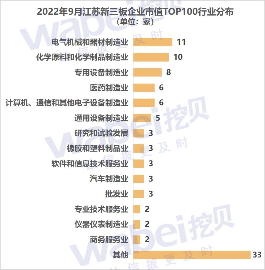 2022年9月江苏新三板企业市值TOP100:17家为国家级专精特新“小巨人”企业