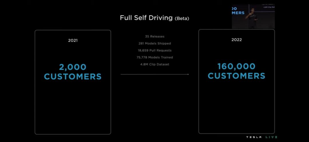 据特斯拉Autopilot负责人Ashok Ellaswamy介绍称,目前特斯拉FSD Beta版拥有客户16万人,而去年同时期仅2000人。