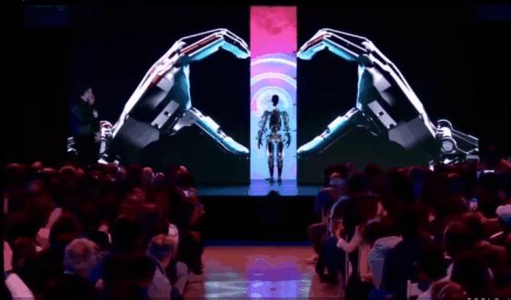 现场露面的Optimus开发版在台上展示了一圈后便下场离去。马斯克表示,其实Optimus能做很多动作,但因为怕它在台上摔倒,所以选择了用视频方式展示。