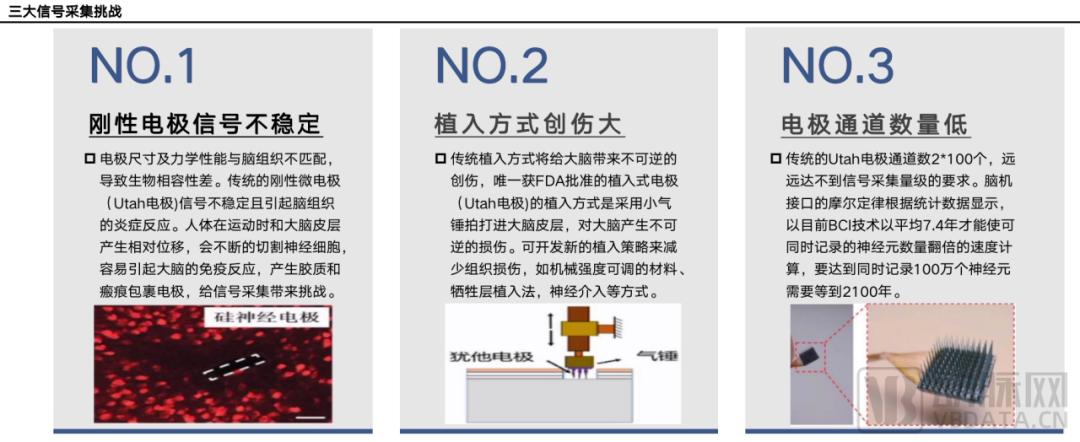 如何在最低限度损伤大脑和最大限度利用大脑之间达到平衡,是脑机接口技术的核心挑战。如何解决植入电极后信号衰减、如何最大限度避免芯片植入对大脑的损伤、如何采集更多的神经元信号是侵入式脑机接口技术目前面临的三大核心技术瓶颈。