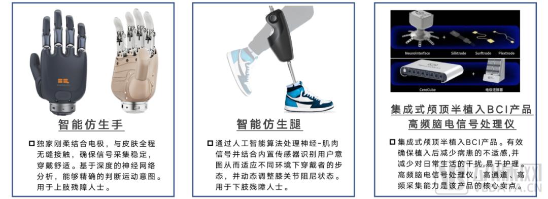 非侵入式脑机接口的智能义肢:通过人工智能算法处理神经-肌肉信号并结合内置传感器识别用户意图,实现“心随手动”及走路跑步随意切换的状态,可为残障人士创造高品质生活。